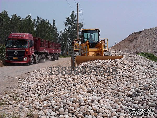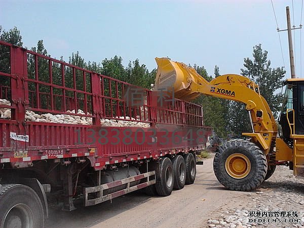 佰科鵝卵石廠生產(chǎn)的5-8cm白色變壓器鵝卵石裝車運(yùn)往某電站滲油使用現(xiàn)場裝車照片。